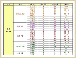 2013 전라북도 보건진료직, 간호직, 보건직, 환경직 공무원 시험장소 발표! 안녕하세요~ 2013. 8. 24 (토)에 실시되는 전북 지방공무원 시험장소가 발표되었습니다. 자세한 내용은 첨부파일을 확인해 주세요~ 8급 보건진료직, 8급 간호직, 9급 보건직 시험 접수자 전원은 에서 시험을 실시합니다. 9급 환경직 (수질 포함) 시험 접수자 전원은 에서 시험을 봅니다. 이번 전라북도 보건진료직, 간호직, 보건직, 환경직공무원 경쟁률은 아래와 같습니다~ 모두 화이팅 하세요~!!!