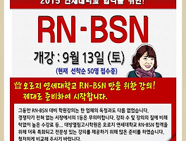 2014. 12월에 실시되는 연세대학교 RN-BSN 시험 합격을 위한 맞춤식 특강이 2014.9.13(토) 개강합니다.